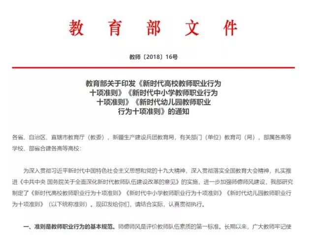 其中《新时代高校教师职业行为十项准则》有如下内容: