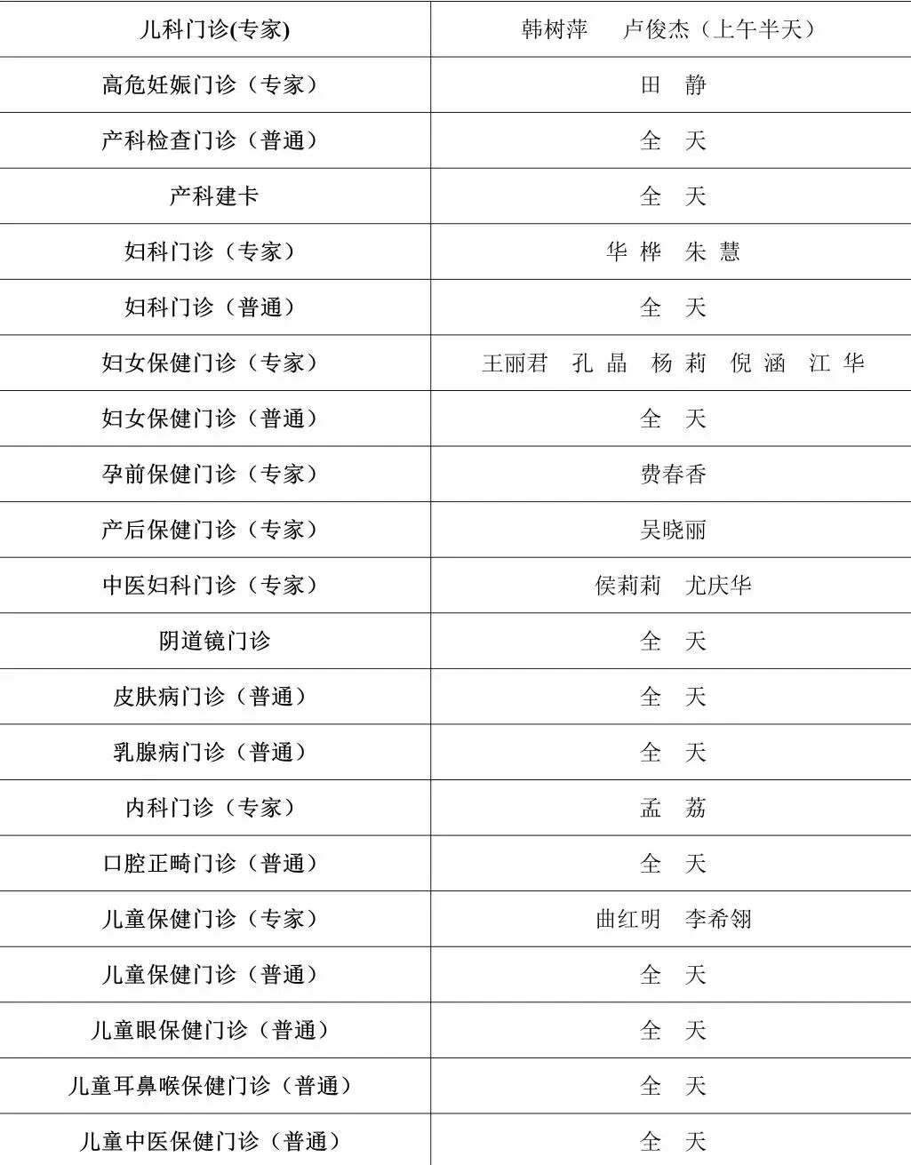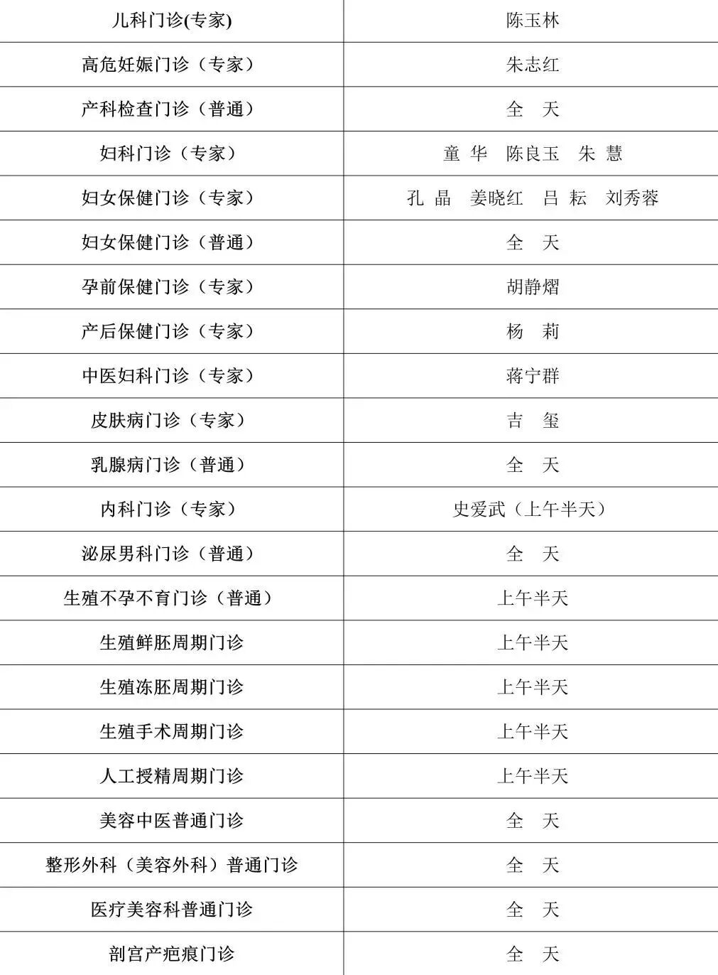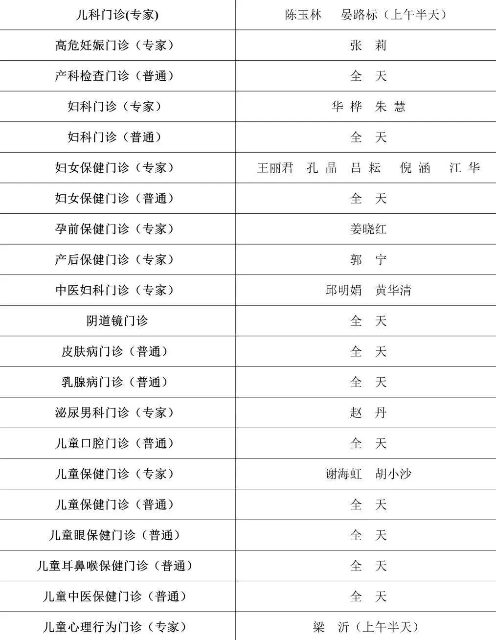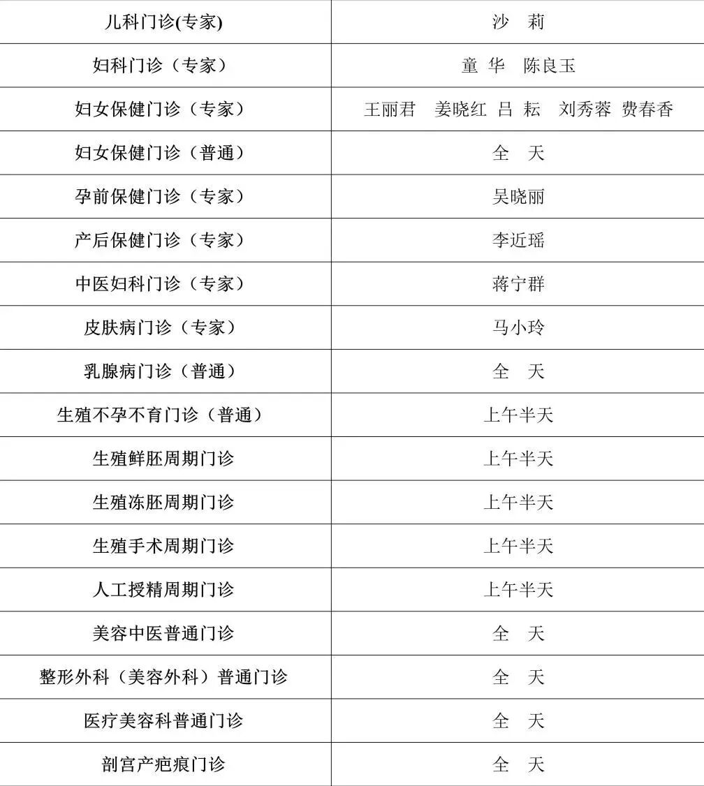 门诊排班具体如下: