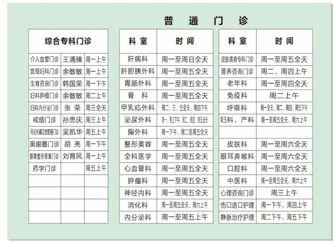 普通门诊开诊安排如下