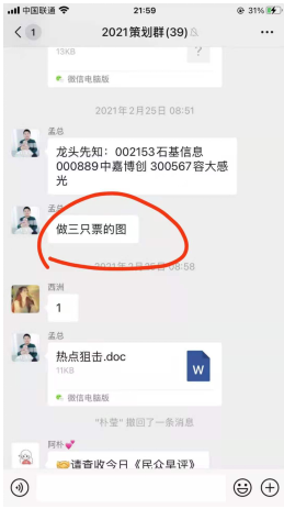 图6(主要选一些涨停的票,用来P成跟成交客户的聊天记录,去营销刺激新客户)