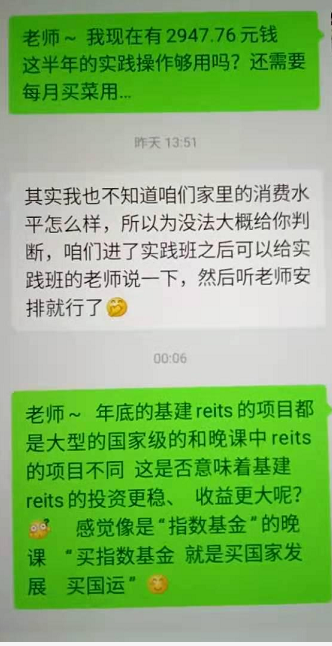 2020年11月底,一天孩子妈妈在书房,我无意看到她的手机,微信群里,有理财内容和喊口号,我下意识的明确说,里面有“托”,有交钱吗?她说,只交12元,只交12元,剩下的几天,我经常问她,学完了吗?她说快学完了,还有几天,到时要解散群,我当时也是信服她,没有多了解。可是过了几天,再一次问她,她说学完了,又交钱了,交了6998,轻描淡写的话语,我确定是被骗了,一是她被骗了,二是她也欺骗了我,我明明关注这个事,而她被微淼的老师重重洗了脑。从12元到6998,几天功夫,微淼你们的嘴皮功夫,真值钱,这都是销售冠军,我了解,微淼老师月入好几万,9万多的不在少数,这工作可好了!后面当我了解她的学习内容和微信内容,我发现,这根本不是正规的教学,如同传销一样,讲的理财内容漏洞百出,名词解释都是自己编造,“主动基金”极其极其不专业,还来个“投资本无风险”,你要逆天,分清什么什么资产,你啥投资也有风险,你再分清,你也不是庄家,老百姓个个跟你学挣钱,要劳动干啥,世界都是你的,是吧!中间夹杂着大量心理话术,托,假案例,诱导诱骗内容,鸡血,让人失去思考能力,完全就是洗脑。