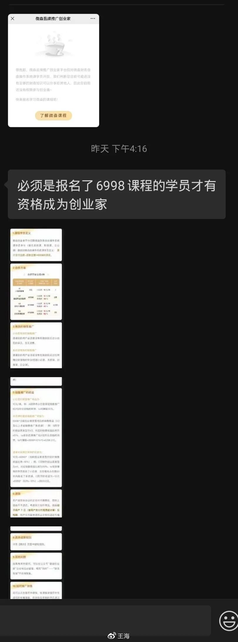 微淼四:《跟踪:微淼商学院走传销模式?培训老师建议学员交7000元再去发展下线》