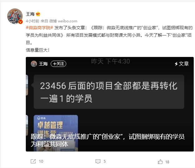 跟踪:微淼无底线推广的“创业家”,试图捆绑现有的学员为利益共同体