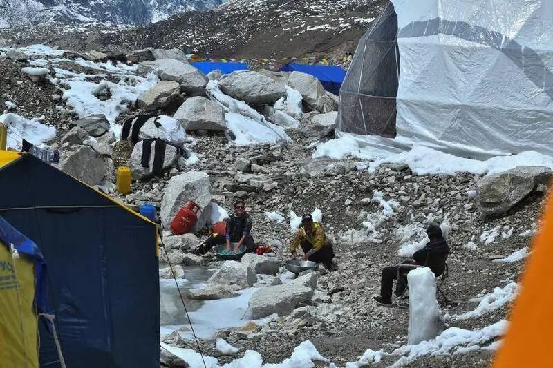5月1日,在尼泊尔珠峰大本营,探险队成员在帐篷外做家务。图片:法新社如今尼泊尔检测的感染率极高,这表明大量病例还未被发现。况且跟印度一样,尼泊尔政府仍允许一系列重要宗教节日继续举办。接下来的几周,尼泊尔更多节日即将到来。著名的拉托·马其德拉纳特(Rato Macchidranath)音乐节,将于五月晚些时候在加德满都附近举行。音乐节主办方表示,他们将采取社交距离措施,并强制参加者佩戴口罩。对此,尼泊尔卫生部官员高塔姆(Gautam)并不乐观。因为举办大型活动时,兴致高涨的民众可能不会遵守宵禁和封锁令。在高塔姆看来,能否控制住第二波新冠疫情,主动权掌握在尼泊尔人民手中。![]()