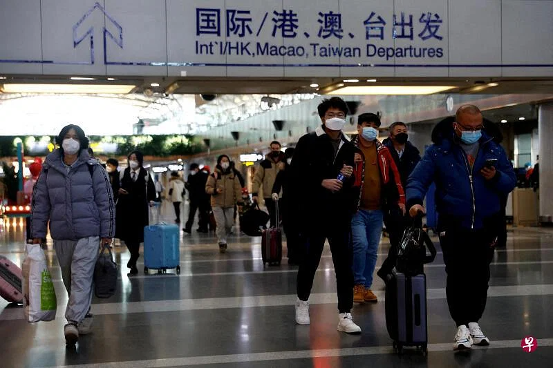 中国重开国门,预计大批中国人会出境,引起一些国家的担忧,图为旅客星期四在北京首都国际机场准备出境旅行。(法新社)