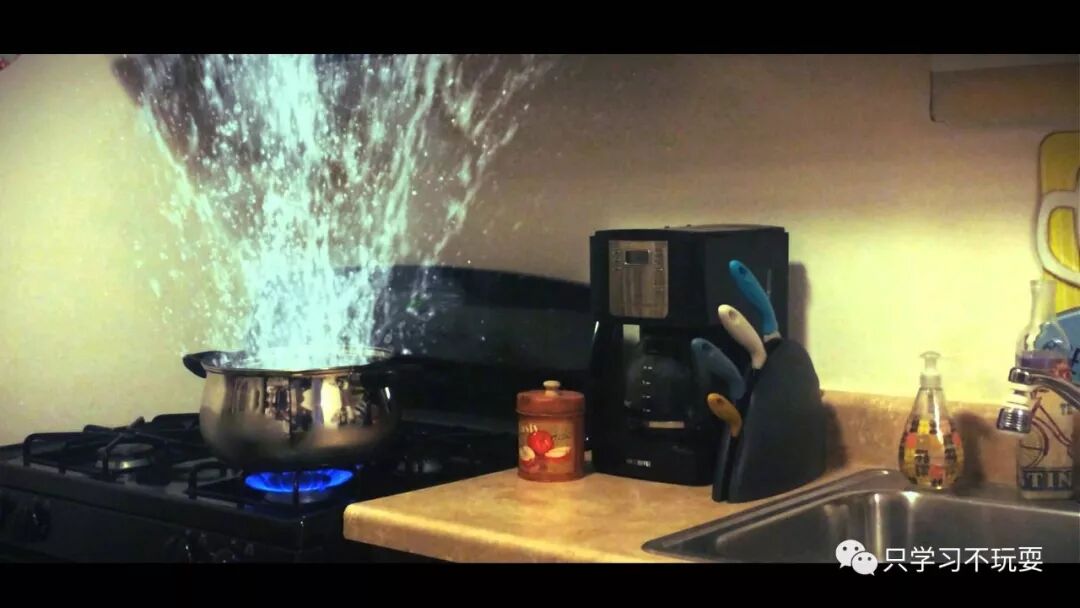 “这是我煮红豆羹的后果。幸好我在阳台上打电话,不然天花板就是我的脸。”