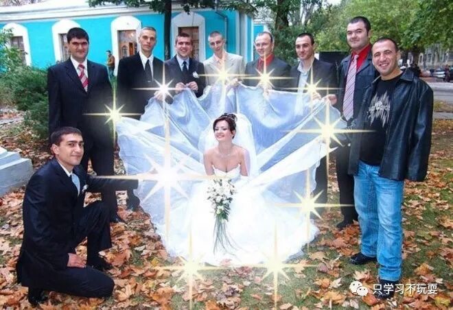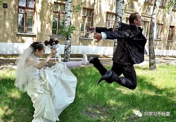 战斗民族才不会选择传统婚纱照,就像遇到恶劣天气他们也不会选择取消航班一样。