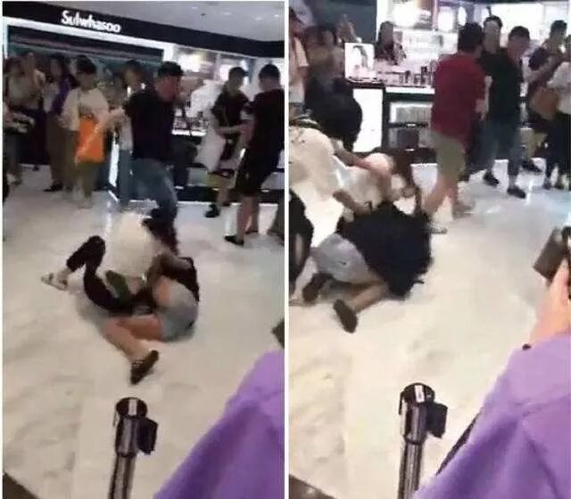 视频显示,原本四位女士的谈话由争执升级为咒骂。其中,黑衣女子的一句“你个肥逼(youfat c**t)”瞬间引爆战火。