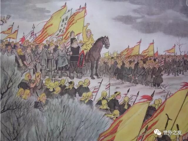 太平道教主张角得到来自京城眼线报告,决定提前起事,他提出一个特有文学水准的政治口号:苍天已死,黄天不立,天下大吉,岁在甲子!率领青、荆、幽、徐、扬、兖等八州信徒发动起义。张角下令,每一位参与起义成员,人人头顶都必须包裹黄色头巾,所以史称黄巾起义。可惜,起义几个月后,张角自己生病死了。不知道张教主生病时,有没有喝他自个儿念过咒语的符水?或许喝过,但他自己也信不过自己,所以还是死了。由他领导发起的黄巾起义,从公元183年三月发动,公元184年十二月,被三国名将皇甫嵩、卢植等人镇压下去,声势浩大的黄巾起义,只坚持一年左右时间,就结束了。张角作为中国历史上太平道的教主,在其起义过程之中,所用的一些欺骗民众的手法,可能为许多现代人不屑,但因为张角,改变了东汉王朝的运动轨迹,在张角之前,东汉王朝处于宦官或外戚股掌之间。宦官集团,毒害天下。东汉王朝许多民众对社会绝望之后,跟着张角兄弟造反,他们其实是跟着一个虚幻的梦想,挺而走险,结果天下大乱,东汉王朝的另一政治势力——豪强集团,开始崛起……