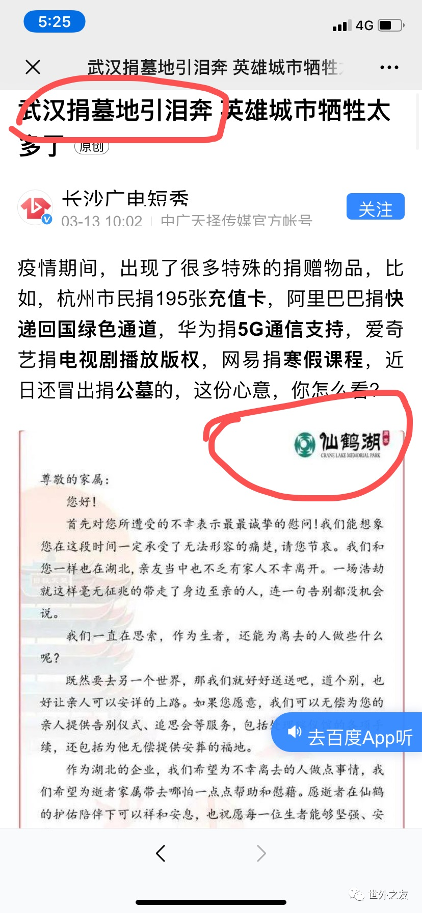 这家企业竟在3月初宣布捐赠1000个坟墓给新冠疫情的罹难者,不啻为旷世奇闻,史无前例,让老夫看得目瞪口呆。虽然不伦不类,感觉怪怪的,但是对于那些生不起、死不起也病不起的普通家庭来说,分明就是雪中送炭和千里送鹅毛的另类版本,可谓义薄云天,惊天地,泣鬼神!