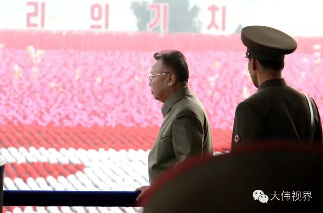 金正日笑着,边鼓掌边走上主席台。很快,他收敛了笑容,站在那里,目视远方。他像是个舵手,掌握着航行的方向……