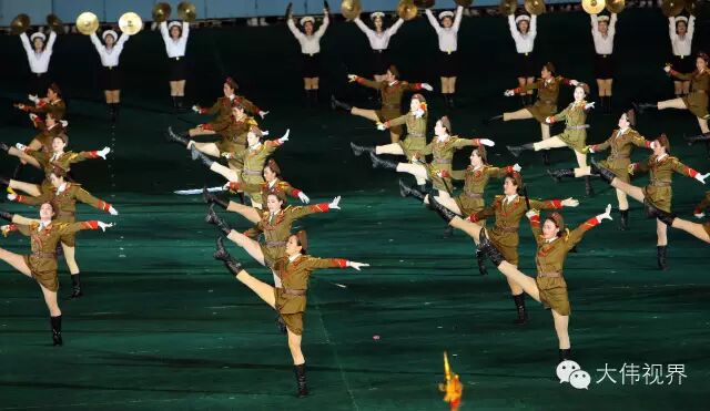 第二次看《阿里郎》了,仍然让我感到震撼。十万多人参加演出,武术、体操、杂技、舞蹈衔接有序,灯光、音乐、布景、特技变幻无穷,表现出很高的协调性和整体感。表演的开头,一轮红日冉冉升起,数千名身穿洁白民族服装的舞蹈演员从四面八方涌来……拉开了“阿里郎”的序幕。从苦难历史到革命历程,从建国后的建设成就到当代人民风貌……《阿里郎》大型演出,如同一部浓缩版的朝鲜历史。