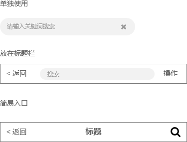 导航栏通常左侧显示返回按钮,中间显示页面标题、右侧显示快捷操作。微信的导航栏,当页面数据正在加载时,标题处显示正在加载的效果。搜索栏,主要是用于搜索的入口,搜索栏通常配合搜索界面,在搜索界面,显示最近的搜索记录,还可以一键清空搜索内容。当搜索结果较多时,可以加一个范围选择,可以快速进行分类标签栏位于页面底部,可以快捷切换,换到不同的页面,通常作为产品的一级导航。工具栏是对视图的操作,比如对文章、音乐、视频的点赞、收藏、评论。工具栏容易和标签栏混淆,标签栏属于导航,而工具栏属于操作,这是本质的区别。侧边栏,默认情况下是收起的状态,当点击某个按钮的时候,从侧面弹出,当移动端页面内容紧凑时,会考虑使用侧边栏,比如个人中心、分类筛选项目较多。按钮是比较常用的控件,通常是用产品进行输入操作发起的入口。![]()