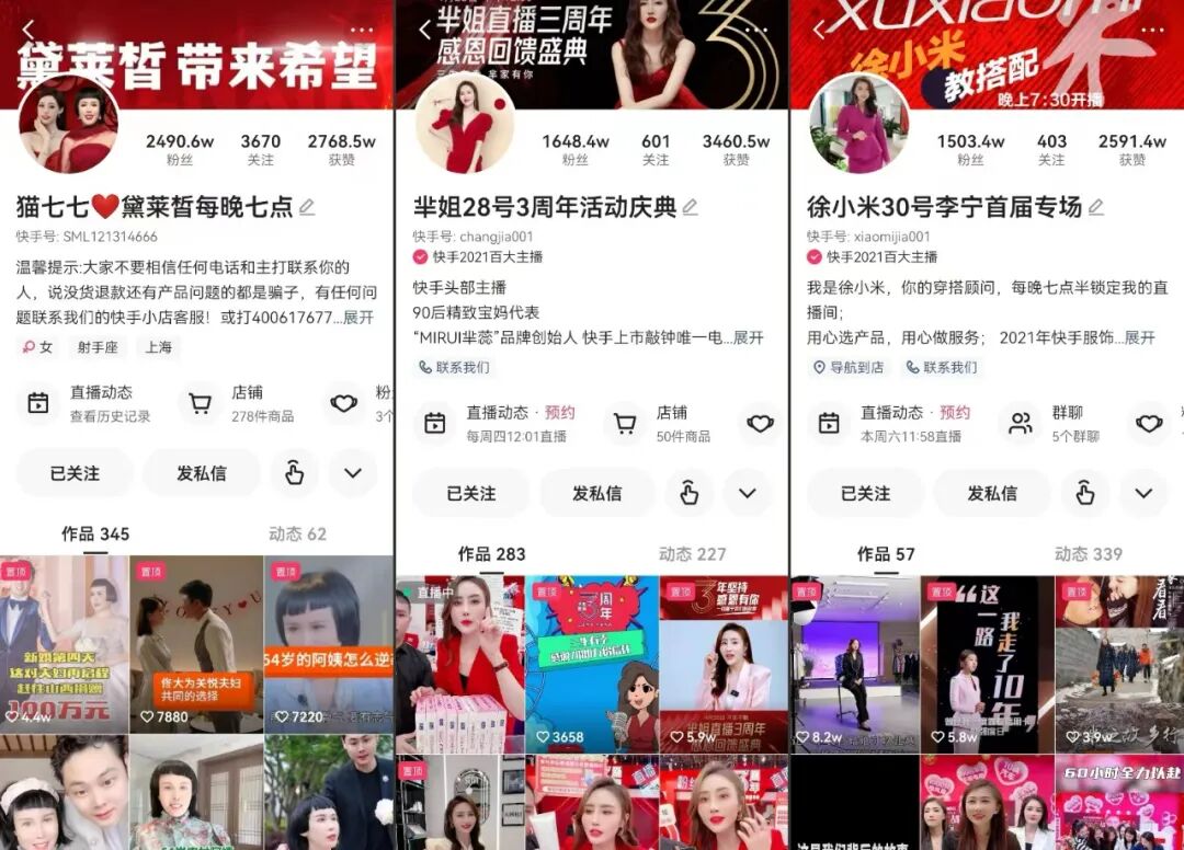 GG是快品牌迅速起步、扬帆起航的标杆之一。类似的品牌商家在快手不在少数,例如女装品牌姗蔓、千柏年;童装品牌泡泡多;厨具品牌厨之翼和家纺品牌布料哥等,都通过自建账号和高频直播的方式,实现了粉丝量和GMV的双重增长。