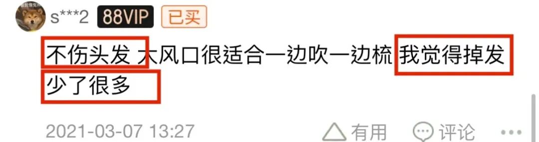 下面已购用户的回答,又会让人心动不已:不伤头发!吹干快!声音小!头发不会搅进吹风机里!