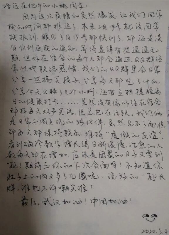 隔离病毒,但不隔离爱。建筑工程学院的同学们积极参与到此次活动,他们与武汉人民之间相互牵挂。在疫情面前,我们都是一家人,有太多的话想要对你说,很多的事想与你一同分享,给你的一封信,希望你能收到。我们相信,只要我们万众一心,就一定能迎来春暖花开。