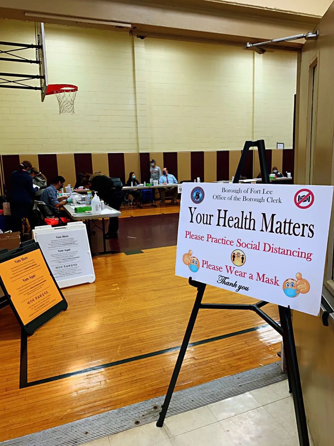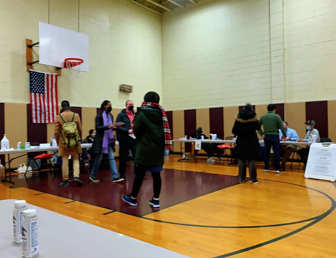 Ellen早锻炼的时候,跑步去了设在社区中心的投票站。疫情期间,投票站里准备了消毒湿纸巾和洗手液,要求选民佩戴口罩并保持安全距离。