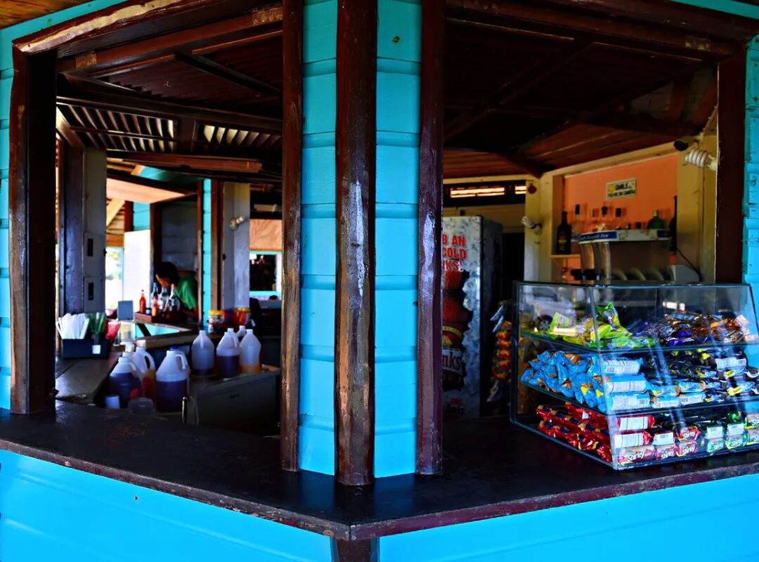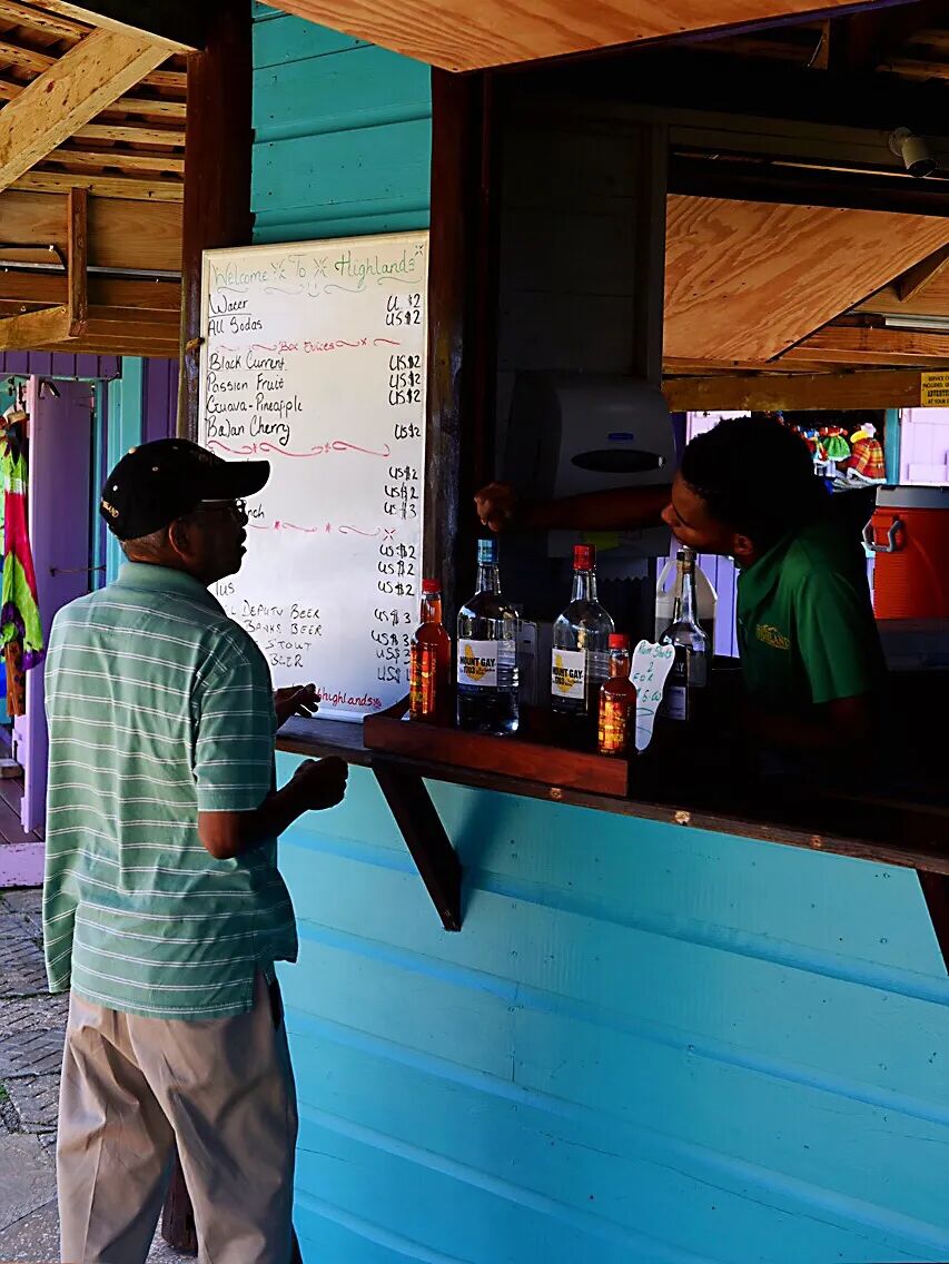 登岛后看见一个醒目的蓝色小木屋,售卖各种饮料和酒。店主说他的酒种类齐全,价格也不贵,很多游客喜欢来这里喝上一杯。巴巴多斯有30万人口。司机告诉我们,昨天巴巴多斯百姓刚刚庆祝了他们独立52周年纪念日。