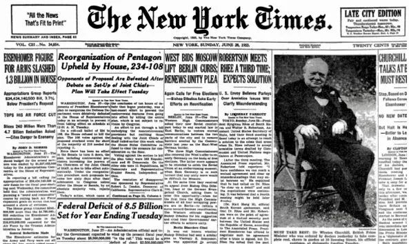 当丘吉尔取消与艾森豪威尔总统的会晤时,巜纽约时报》在1953年6月28号报道:“首相要么沉迷于'外交疾病',要么病重。”