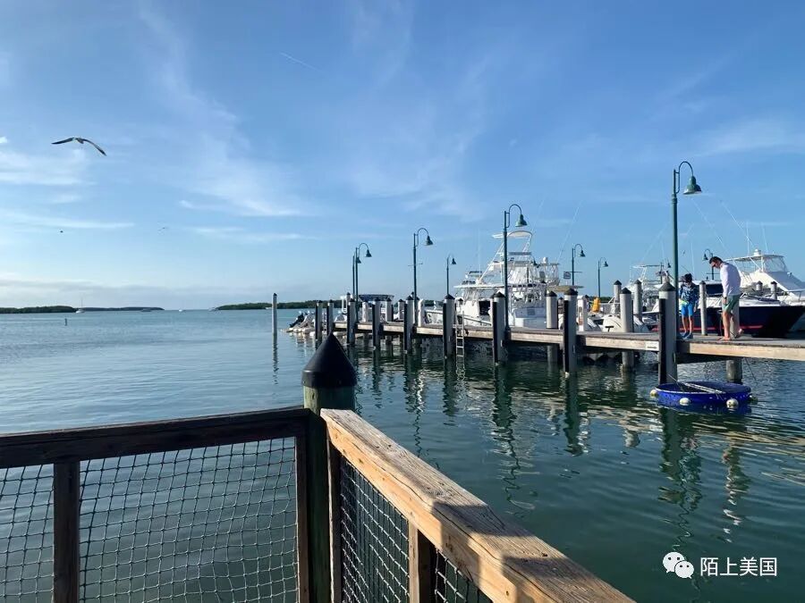 次日起了个大早,赶往美国最南部的小镇,Key West。这是一颗墨西哥湾孕育的明珠,坐落于美国和古巴之间的一个小岛,中文翻译,西礁岛。我们没有赶上去干龟岛国家公园(Dry Tortugas National Park)的渡轮,这也在意料之中。给孩子留点遗憾,以后再来。不过这个国家公园值得介绍几句。如果说来到美国后,对这个国家的印象有几个关键的改变和定位的瞬间的话,那么17多年前第一次去这个天堂一般的海岛,就是其中之一。历史上这里曾经是一个军事基地,当年密谋刺杀林肯的凶手就被关押此地,而今这个废弃的军事城堡已经成为举手皆风景的人间仙境。一旦你见过那里的海,从此再也没有可以取代她的蓝。美国一共63个能以“国家公园”冠名的地方,这里凭一个巴掌大小岛的资历能跻身国家公园绝非浪得虚名,给加几张网图,可以照着这些照片放大一千倍的程度去想象一下实际的美丽动人。一下多出很多时间,我们开始闲逛西礁岛这个漂亮的渔村。岛上有个著名的美国最南端的石墩,在旅游旺季,比如正常年份的圣诞节,要跟这个长相卡通的矮胖石墩合个影,可以排队至少一小时。不过在这个新冠季节的早上九点,就只需要几分钟就能排到了。这里也是美国距离社会主义阵营-古巴最近的陆地,90海里,两个世界。