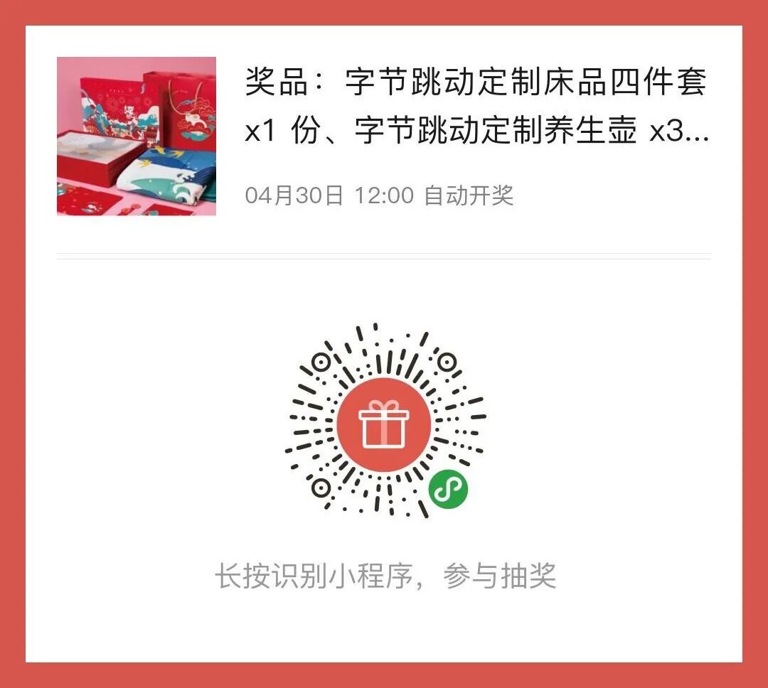 一等奖:字节跳动&水星家纺床品四件套 (价值1688元) 1个