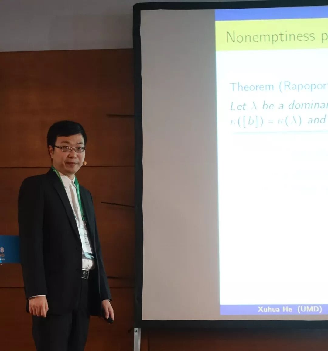 何旭华,2001年毕业于北京大学数学科学学院,获学士学位。2005年获美国麻省理工学院博士学位。现为美国马里兰大学教授。他在本次国际数学家大会上作了题为“关于仿射德利涅-卢斯蒂格簇的一些结果(Some results on affine Deligne–Lusztig varieties)”的报告。关于仿射德利涅-卢斯蒂格簇的研究源起于算术几何,然而很多相关问题则是李代数的问题。在报告中,何旭华介绍了在仿射德利涅-卢斯蒂格簇的几个重要问题上的最新进展,重点围绕李代数的方面,同时介绍了与算术几何的一些关联以及在算术几何上的一些应用。