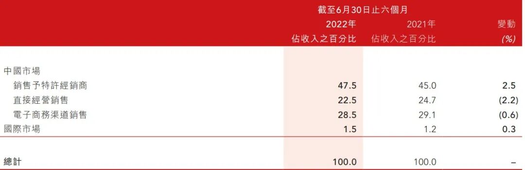 结果如何?从上图李宁2022半年报蜜妹看到,期内其来自国际市场的营收仅占总营收的1.5%,同比微增0.3%。不过能增加也不错,2022上半年,李宁来自中国市场里直接经营销售、电商渠道销售的营收占比同比都下滑了。