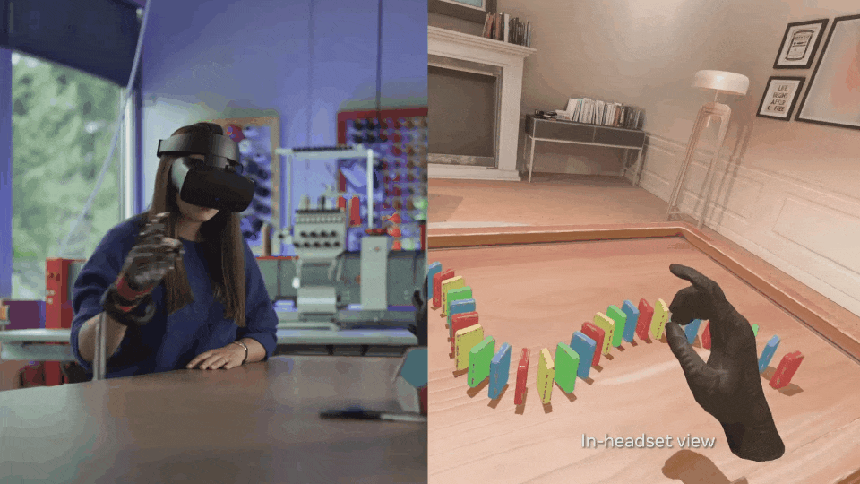Meta这样描述道,想象一下,你与朋友的超逼真3D头像一起处理虚拟3D拼图。当您从桌上拿起一块虚拟拼图时,感觉到它在您的掌握中时,您的手指就会自动停止移动,当您拿起纸板进行仔细检查时,您会感觉到纸板边缘的锐利度和表面的光滑度,然后在将其安装到位时发出令人满意的咔嗒声。