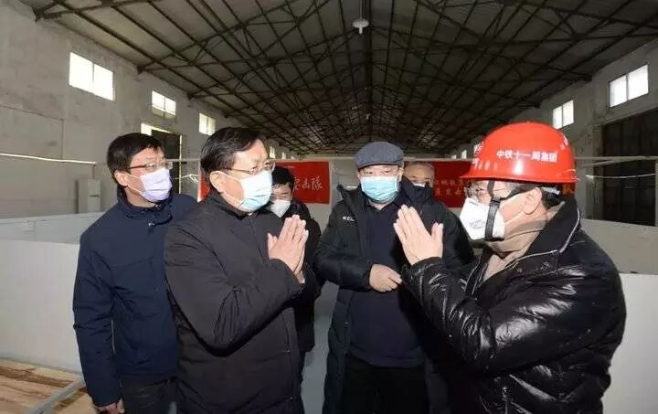 16日,王忠林前往正在建设中的谌家矶、武汉光谷科技会展中心“方舱医院”督导。