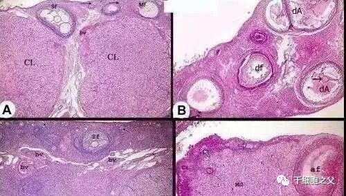 研究证明,不同来源的成体干细胞均可改善小鼠受损或自然衰老的卵巢功能及卵巢储备,促进卵泡发育,增加卵泡和基质细胞增殖,增加卵巢局部血管,减少细胞凋亡和卵泡闭锁,提示干细胞疗法是提高生育力的新型疗法。