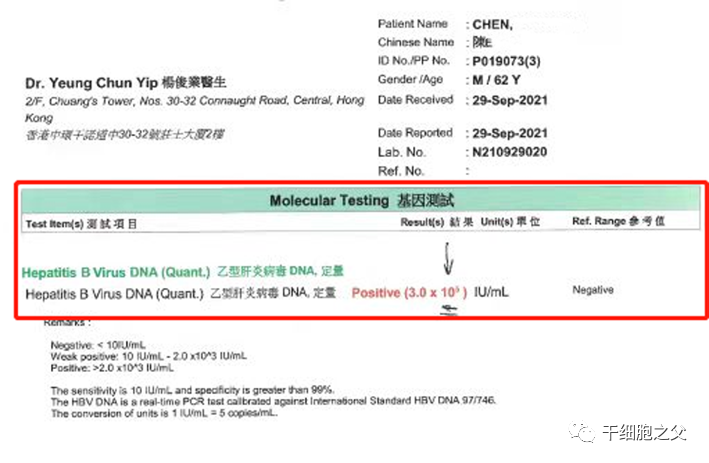 陈先生在进行了5次细胞回输后,再一次去做了乙肝检测,结果如何?