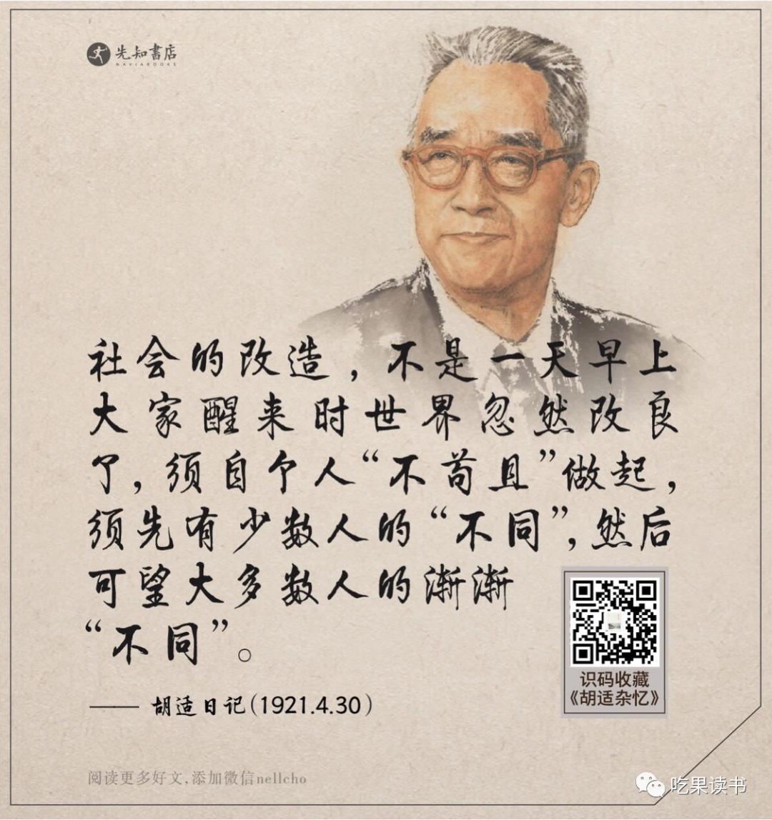 胡适一生,曾与学界泰斗梁启超有过两次交集。第一次是1921年,梁启超请胡适为自己的《墨经校译》作序。胡适很真诚的写了一篇序,对梁启超研究墨子的成绩予以充分的肯定,同时也很直率的提出了不同的见解。梁启超嘴上称赞胡适“极纯笃的学者风度于学风大有所裨”。出版时却把胡适的序排在了最后,而把自己反驳的文章放在了最前面。第二次是1922年3月,梁启超赴北大三院演讲时评论胡适的《中国哲学史大纲》。先褒后贬,言辞极为犀利刻薄。评论完,留下一段时间让他答辩。胡适大度而谦虚的说:“我希望多得不同观点,再希望将来的学者加上考虑的功夫,使中国哲学史不被一二人的偏见遮蔽了。”后来在日记中提到这两次交锋,他写道:“这都表示他的天真烂漫,全无掩饰,不是他的短处,正是可爱之处。”大学者陈之藩曾说:“没有人不爱春风的,没有人不在春风中陶醉的。春风是爱物的,长者是爱人的。胡适先生是长者。”这句话应视为对胡适一生为人的最好注解,《水浒传》里,及时雨宋江是江湖通行令。而在民国,“我的朋友胡适之”才是,无论相识与否,大家都喜欢说这句话。他曾先后资助林语堂、吴晗、罗尔纲、周汝昌、李敖、沈从文、季羡林、千家驹等一大批才子,后来这些人都成为栋梁之才。对青年才俊如是,对走卒贩夫也一视同仁,卖烧饼的鼻子里长了瘤子没钱治来找他。他立即写信给医院院长:“这是我的朋友,一切费用由我来承担。”他还是民国史上一位热心的红娘,先后为150多对新人证婚。胡适的宽容,不仅是对人对事对学问,对社会也是一样。他一生热爱自由,无党无派,故而最能中立的来看待社会形态。他敢在国民党政府里为清朝废帝讲公道话;他也敢在国民党政府里从政;对受资助者,他从来都是施恩不图报。他说要“长留利息在人间”。他受新思想影响至深,却接受了包办婚姻。季羡林在回忆他的文章里写道:“他待人亲切和蔼,见什么人都是满面笑容,对教授是这样,对职员是这样,对学生是这样,对工友也是这样,从来没见过他摆当时颇为流行的名人架子、教授架子。”《道德经》里讲:上善若水,水善利万物而不争。处众人之所恶,故几于道。居善地,心善渊,与善仁,言善信,政善治,事善能,动善时。夫唯不争,故无尤。大善隐身,厚德载物。世间如果有君子,名字一定叫胡适。▍君子从容,一生自由