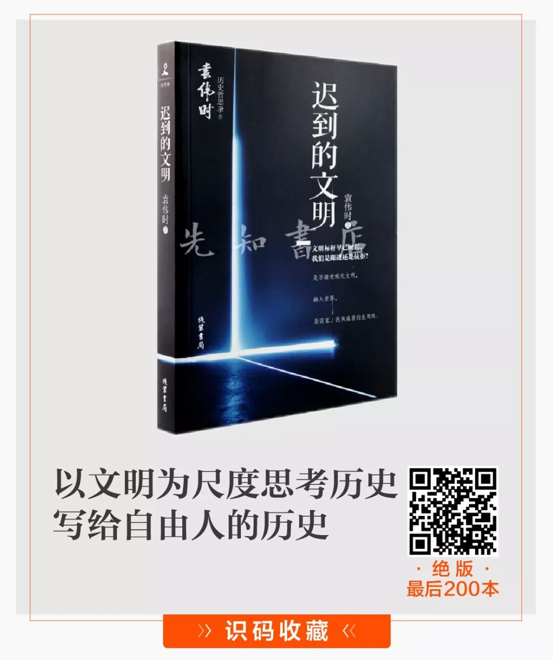 除了分析文明迟到的根本原因,袁老说:历经触目惊心的沉沦挫折,中国人理应大彻大悟,铭记血的教训,敢于冲破思想的牢笼。如何才能拥抱文明之光,这是贯穿袁老《迟到的文明》一书的最核心的问题。