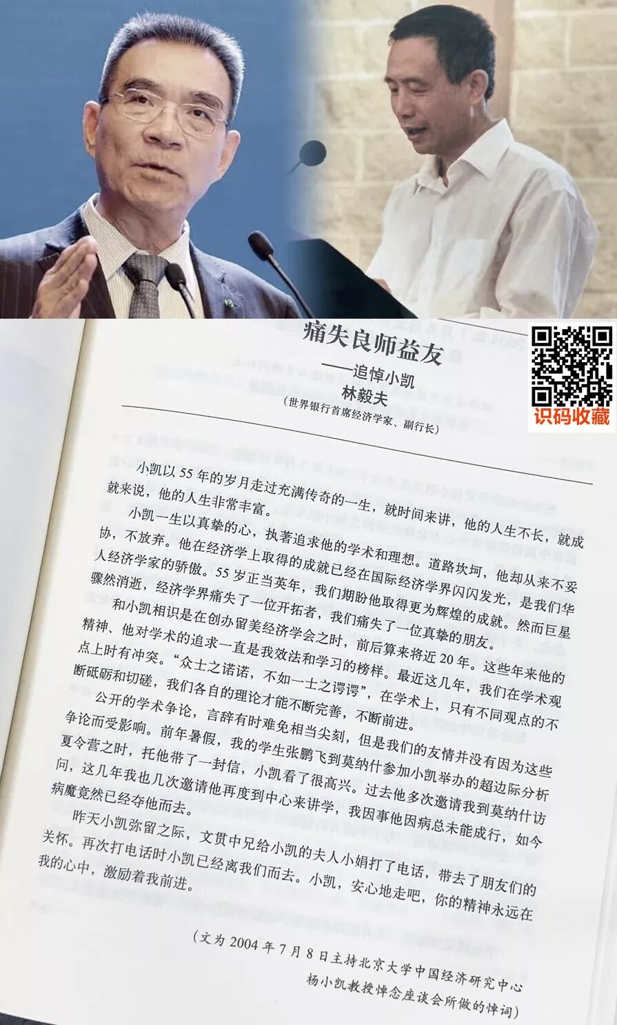 值得一提的是,杨小凯不仅得到茅老、张维迎、刘军宁、韦森等学者的大力推崇,他的学术修养和人格魅力,也得到了学术论辩对手林毅夫等人的尊重。杨小凯去世次日,林毅夫主持了北京大学中国经济研究中心悼念杨小凯的活动;2014年,在上海召开的杨小凯逝世10周年追思会上,林毅夫再次出席。这在“文人相轻”的国内学术界,实属罕见。