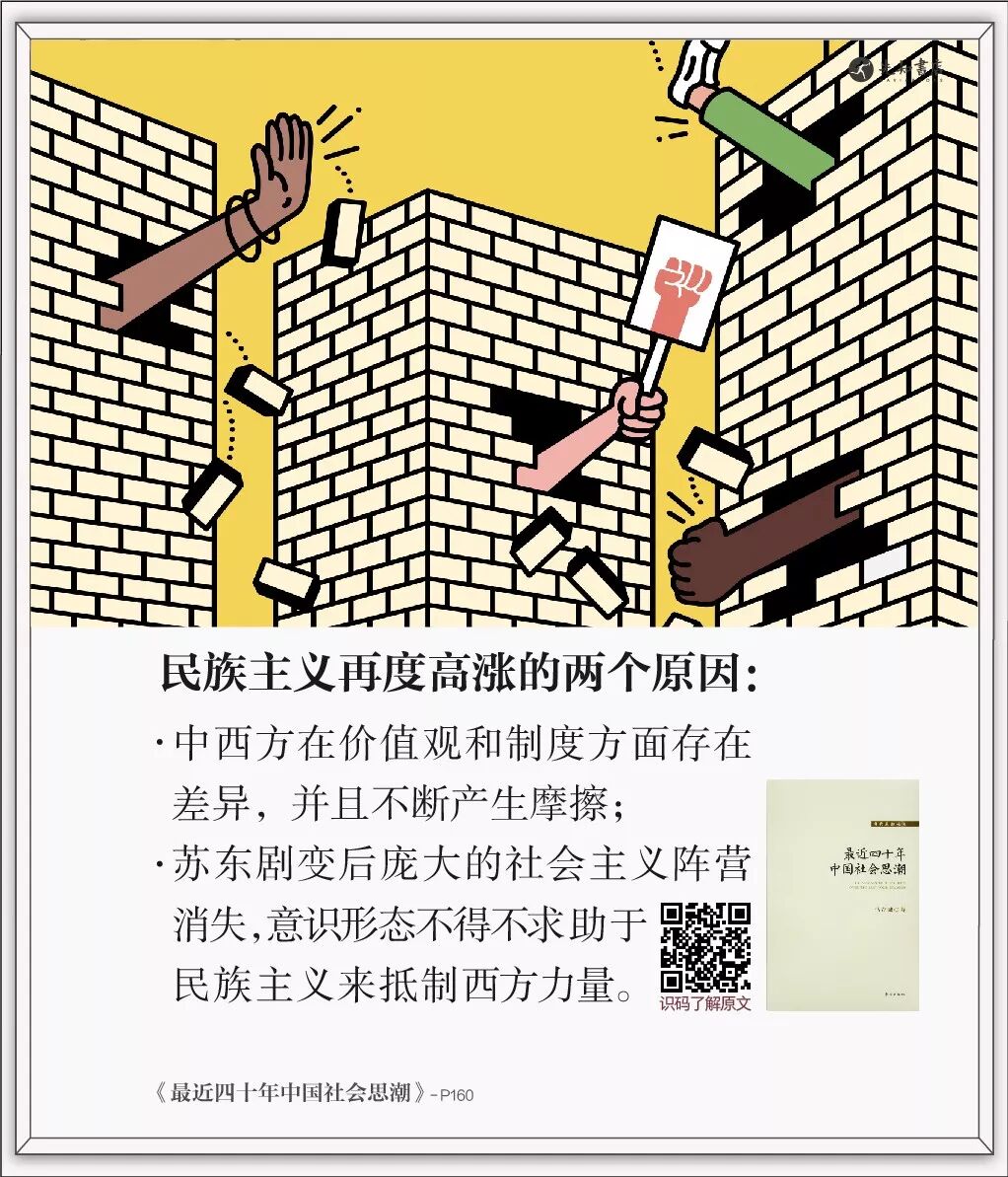 同样,意识形态在中国虽然也减弱了,但对中国未形成威胁,因为中国有几千年之久的汉文化作为核心维持团结,它已激起了新的中国民族主义。