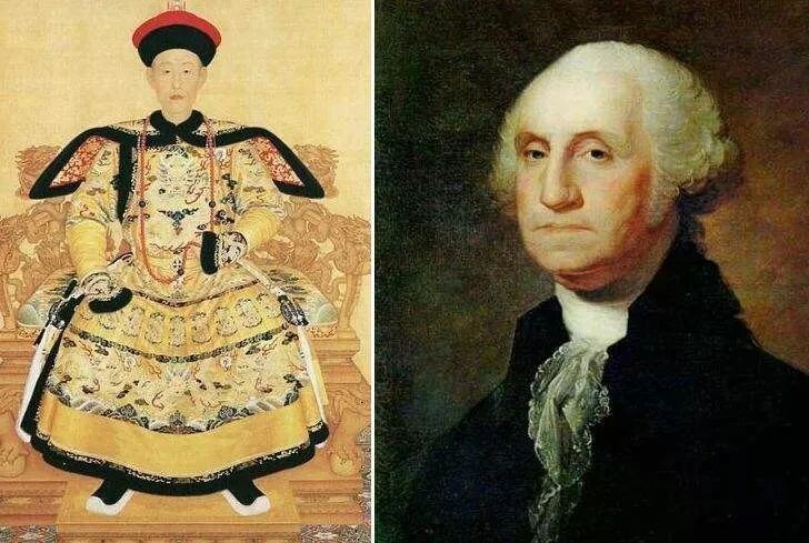 在同一条时间轴里,乾隆带领中国走向高度的封建中央集权制度,统治后期腐败成风,大清王朝由盛转衰,而乾隆帝死后大清朝已经是日薄西山,走向衰亡;反观华盛顿,他领导美国赢得了独立战争,并作为第一任总统,在美国推动实行了共和制,留下的是生机勃勃,充满希望的美国。