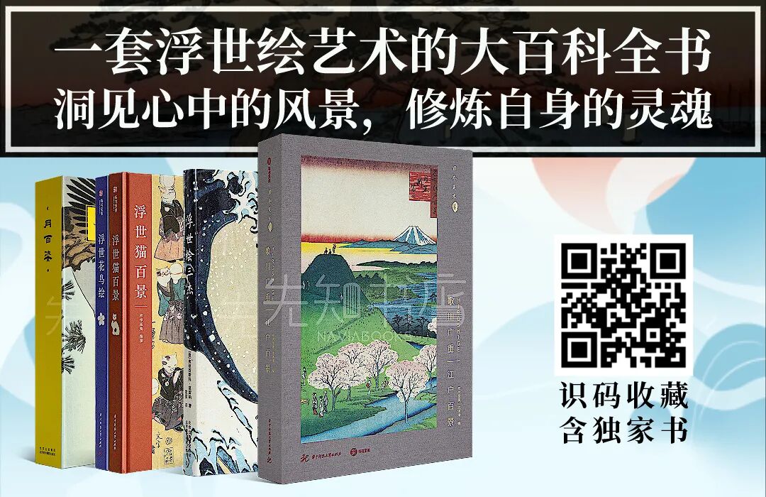 然而,以浮世绘作品市面上的版本虽多,但能还原其灵魂真正意境、又值得收藏的版本却少之又少。为此,先知书店特别推荐:“江户百景系列”五书。这是一套最值得典藏的浮世经典。《歌川广重 : 江户百景》为独家图片装帧版,全球限量2000册,售完即绝版;《浮世绘三杰》收录和解读喜多川歌麿、葛饰北斋和歌川广重三位浮世绘大师的经典作品,是认识浮世绘的佳作。《月百姿·浮世绘》《浮世花鸟绘》《浮世猫百景》三书则着重以人物、花鸟,拟人化的猫等为描绘对象,尽显浮世绘的瑰丽、奇幻、荒诞与深沉。