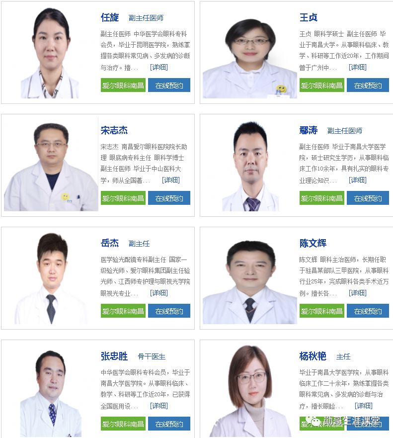 上述的图片,来自江西爱尔眼科官网上的图片,简单地点了一下人数,第一页8位医师,有3位是带眼镜的。