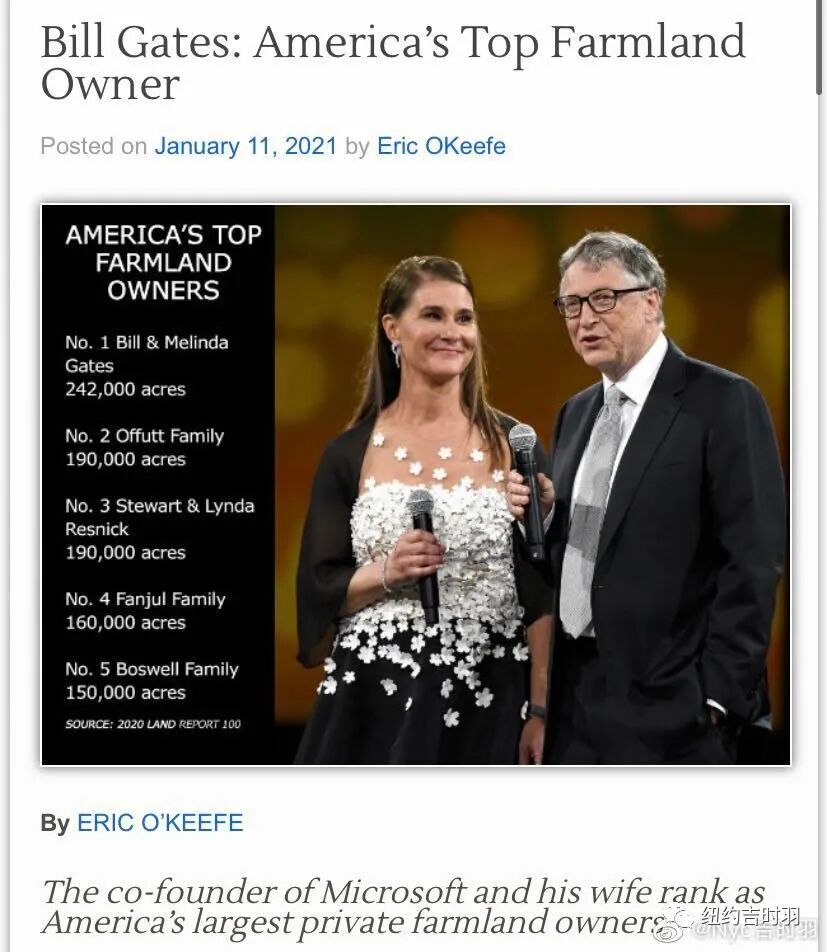除了以上三个很可疑的项目之外,最近人们发现,比尔盖茨竟然悄咪咪的成为了美国最大的私有农田所有者。