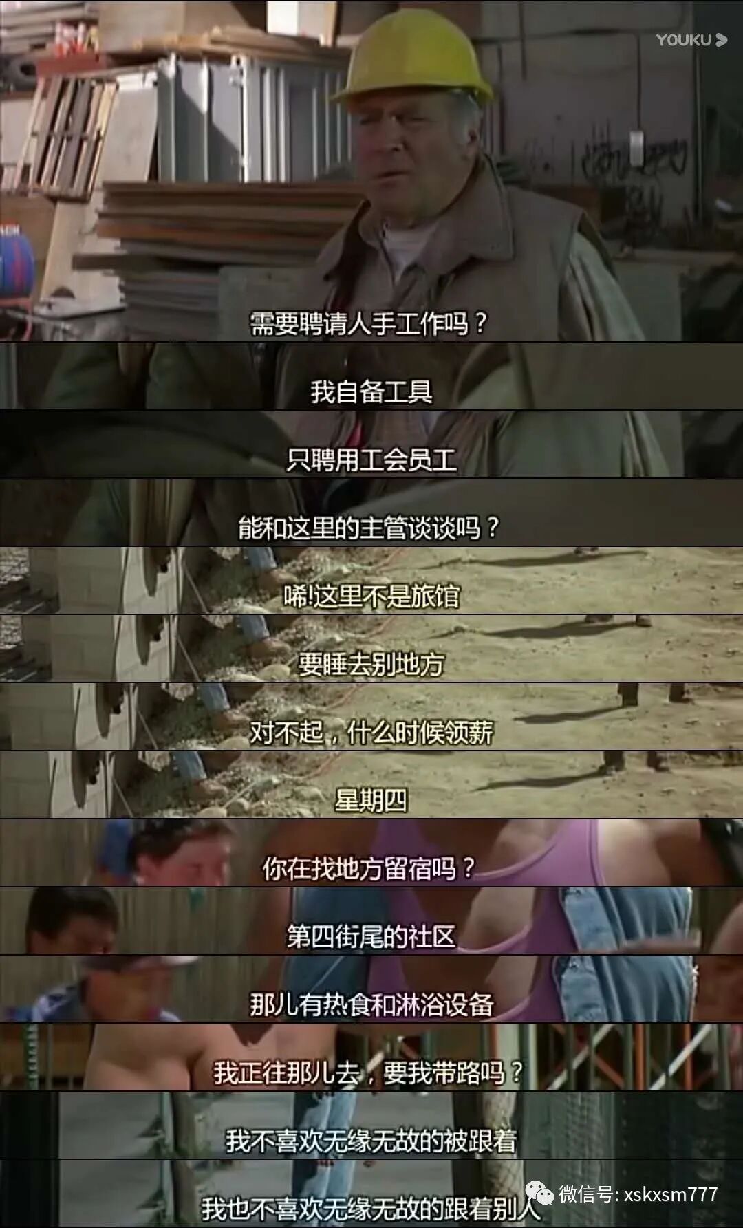 下面这段更是很清晰的揭露出来了,大多数中层阶级,当你赖以生存,平日里看着光鲜亮丽的工作失去之后,你能够做的是你平日里看不上的民工的工作,你内心的骄傲也比不过现实中你需要去吃饭。