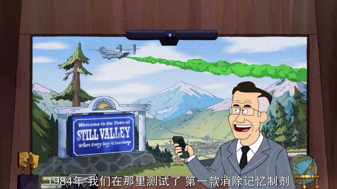我宣布,这可能是这么多年来,肯尼迪被黑得最惨的一次。因为隐藏在人类中的精英大蜥蜴人们,更喜欢在更温暖的环境生活。这些政客名流们,包括演员杰克·吉伦哈尔,歌手麦莉·赛勒斯,黑人超模娜奥米·坎贝尔,和大名鼎鼎的麦当娜……原来霉霉那首著名的《Shake It Off》,讲的是蜥蜴人换皮的体验。而英国女王之所以会如此长寿,同样也因为她是一个蜥蜴人。当然,看到最后你会发现,这种“蓝血蜥蜴人”的设定并非只是脑洞大开,同样也具有某种现实意义。这很可能是对“犹太人”的一种戏仿。毕竟,好莱坞的确有相当大的话语权,是掌握在了犹太演员的手里。但与此同时,这些解构与戏仿,都并非只停留在了肤浅的表面,反而都能感受到主创对于这些概念的深挖和反思。例如,其中一集大肆嘲讽了鼎鼎大名的《007》系列。考虑《007:无暇赴死》目前仍在热映之中,严重怀疑……这波热度网飞又蹭到了。女科学家在游轮上认识了一位陌生男子,他有着英俊的面孔,强健的身材和极其性感的英伦口音。他们春宵一度。醒来后她发现这个男人不仅是个身怀绝技的特工,还能温柔地为她做英式早餐。直到她发现这位特工先生是个超级自恋、自大的控制狂,自以为深情,其实像一块狗皮膏药,完全不能接受有哪个女人把自己甩掉……因为,身为一名特工,他一定必须绝对,要为自己死去的女朋友报仇。实际上看到这里,你应该已经能感受到这背后对特工电影层层套路的吐槽:长期以来,这个角色都被吐槽为大直男、低情商、性别歧视、过分杰克苏。因为007一向都被誉为是“克妻狂魔”。在24部《007》电影里,他交往了54个女人,有18个在影片中死亡……当你觉得特工片中常见的“为女朋友报仇”梗,大大增加了男主角的人设苏感的时候……另一集的核心,是近几年好莱坞电影颇为流行的「八十年代复古文化热潮」。在这一集里,主角团们同样来到一个八十年代复古小镇——而是显影公司定期给这个小镇的人喷洒消除记忆药剂,让这个小镇的人永远活在1980s。而是为了向被愚弄的人民,售卖所有滞销、停产、过期和危险的产品。这一集堪称头脑风暴地融入了各种八十年代的经典作品。以及《E.T.》《夺宝奇兵》《捉鬼特工队》等等……假如你也是一个1980s粉丝的话,看完可能会忍不住捧腹大笑。但另一方面,这个故事并非只停留在掉书袋式的彩蛋、模仿和致敬。看到最后你会发现,主创们其实相当严肃地解构了“人们为何会产生怀旧情绪”这件事。从表面上来看,“怀旧”是在反对膨胀的物欲、失控的科技、快节奏的生活、日渐冷漠的人际关系。这种幻想不仅仅在于人们倾向于美化自己的回忆,放大那些美好的事,选择性遗忘那些不美好的事情。同样也在于,怀旧本质就是一种成年人的“自我欺骗”:他们假装自己还有一颗童心,就能躲在“怀旧”的壳里,而去逃离现实生活的压力和痛苦。归根结底,人人其实都在怀念一种从未存在过的简单时光。但「怀念」和「从未存在」,这两者本身就构成了一组悖论。当然,整部剧看下来,个人觉得最有意思的,其实还是女主角的塑造。相信你很少能在一部动画里,看到女主角是一位三十岁的女科学家。一方面,她是典型的事业型女强人,一个非常强势的天才科学家。但一方面,她并不符合那种常规的“又美又飒”帅姐姐人设。她之所以不敢与一个真实的人类男性去约会,甚至不惜做一个机器人来陪伴自己,是因为她无法面对真实的人性。她宁愿相信冷冰冰的科技。她能够抵御007的魅力,也是因为她的父亲就是一位自大的男性,而她骨子里无法忍受任何男性沙文主义。她不像其他人那样,对八十年代复古文化充满热情,因为她根本不曾经历过这个时代。她没有童年。因为在她小的时候,父亲没有时间陪她,反而做了一个巨大的、堪称恐怖的“拥抱熊”机器人作为自己的替身。第一集一上来,她所制造的毁灭世界机器人,曾经对她断言:她像一个被机器所吞噬的未来人,像一个被体制所碾压的齿轮。似乎她存在的全部意义就只是工作。她并非没有情绪、没有恐惧,她只是在极力压抑自己的情绪。她身上的人性和你我一样多。因此,在看似鸡飞狗跳、脑洞大开的“毁灭世界”主线之外,这个故事其实仍然有一条相当细腻的女性成长线。