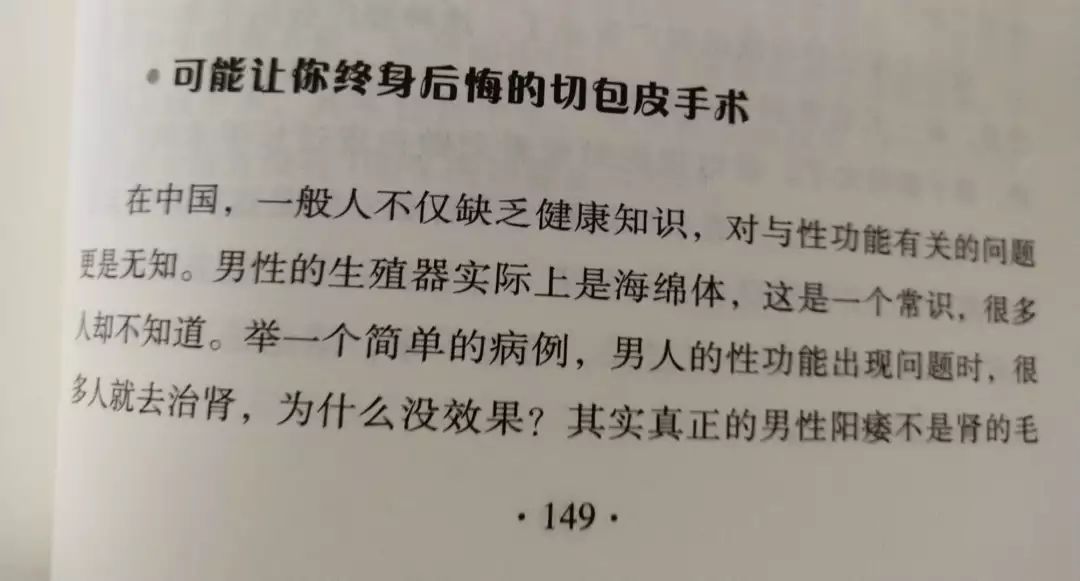我在多年以前就在报刊上呼吁:包皮不可一割了之。其实包皮有其作用,在阴道里前后撸动,对女性的刺激远比光头阴茎要好。在自慰时缺少这层皮,就不能进行。我就遇见割了包皮的患者,因为不育症需要做精液检查,结果他抓瞎了,取不了精液。