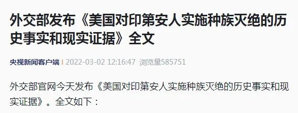 外交部发布讨贼檄文,揭露美国实施人类种族灭绝