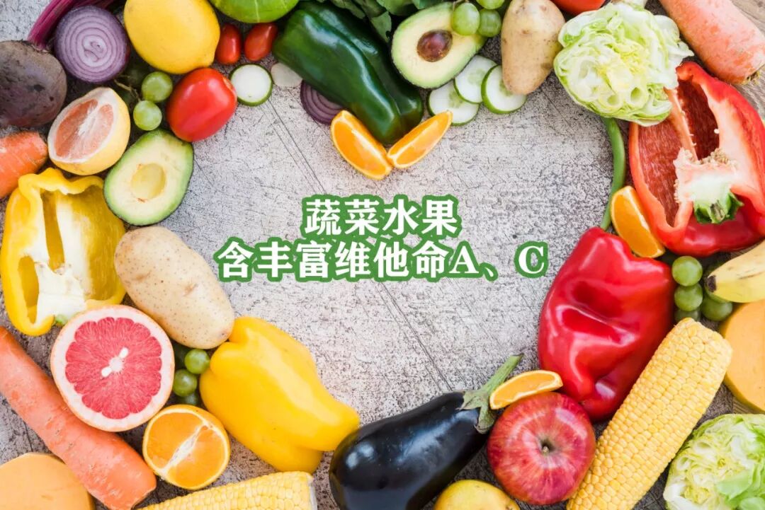 蔬菜水果:含丰富维他命A、C。维他命A能抑制癌细胞生长,防止上皮组织的细胞病变。维他命C能生成PHI (生理学透明质酸锈抑制剂)增加人体细胞的高黏性,阻碍癌细胞侵害人体。维他命C亦能阻止坏物质如亚硝胺的合成,减低癌症发生的机会。