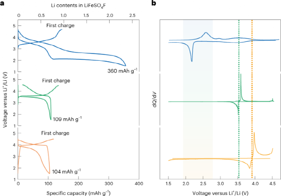 第一作者:Jaehoon Heo通讯作者:Kisuk Kang通讯单位:首尔大学 【研究亮点】本文发现了一种无定形a-LiFeSO4F正极材料,它可以利用嵌入和转化反应,同时具有可逆循环稳定性。a-LiFeSO4F电极的容量为360 mAh g−1,即使在高温(60 °C)下循环200次后容量保持率约为 98.6%。与传统的插层/转化型电极相比,其可逆循环稳定性归因于a-LiFeSO4F固有的无定形结构,即使在转化反应之后,其结构完整性也不会受到严重影响,从而可以继续作为插层主体。 【主要内容】锂离子电池 (LIB) 已被广泛应用于电动汽车和可再生能源大规模储能系统。然而,这些应用的持续改进依赖于先进LIB技术的发展——具有更高能量密度和更低成本的双重特点。当前LIB技术在能量密度和成本方面的局限性主要与层状过渡金属氧化物的正极材料有关,例如 LiNi1−x−yCoxMnyO2 (0 ≤ x, y ≤ 1),其实际容量为迅速达到它们的理论界限。在过去的几十年里,研究人员广泛寻找基于储量丰富元素的替代正极材料,从而发现了几种基于铁-氧化还原对的重要材料,包括 LiFePO4、LiFeSO4F和 Li2FeP2O7。然而,使用重聚阴离子给电极材料增加了额外的重量,从而导致显著低的比容量,这对于商业正极材料是不可接受的。克服固有限制的一种假设方法是在插层反应基础上利用额外的电荷存储机制,例如转换反应。研究人员已经确定并提出了几种高压转换型电极作为正极材料,如FeOF、NiF2、TiF3、FeF2 和 FeF3,显示出作为高容量正极的前景。然而,这些高压转换型正极材料在重复转换反应期间无法提供足够稳定的容量保持。 鉴于此,首尔大学Kisuk Kang教授课题组提出了一种无定形a-LiFeSO4F,它能够通过具有高可逆性的插层和转化反应在1.5–4.7 V电压区间内(相对于Li+/Li)提供高达 360 mAh g−1的可逆容量,对应于Fe2+/3+插层反应的单电子转移(110 mAh g−1)和Fe0/2+的双氧化还原转化反应(250 mAh g−1)。它还实现了超过200次循环的出色循环稳定性,在25 °C和60 °C下的容量保持率分别为90%和98.6%。作者观察到的可逆反应归因于 a-LiFeSO4F 的无定形特征,因为固有缺陷的无定形结构不受通常伴随重复转换/再转换反应的潜在结构无序化的影响。此外,原始a-LiFeSO4F相和放电产物的非晶性质提供了富含空位的环境,其中金属离子(Fe2+)迁移穿过体相/界面变得比晶相更容易,从而促进转化反应电极动力学。本文成功展示了包含插层和转化反应的高度可逆的多机制锂化过程,这意味着在各种非晶插层型材料中可以更普遍地实现高容量特性。在这个方向上的进一步研究将为实现以低成本实现锂离子电池高容量的挑战提供新的机会,从而打破传统插层型材料的容量上限。Fig. 1 | Characterization of a-LiFeSO4F.Fig. 2 | Redox activity of a-LiFeSO4F and polymorphs (tavorite and triplite).Fig. 3 | Ex situ analysis for investigation of mechanism.Fig. 4 | Electrochemical performance of a-LiFeSO4F. 【文献信息】Heo, J., Jung, SK., Hwang, I. et al. Amorphous iron fluorosulfate as a high-capacity cathode utilizing combined intercalation and conversion reactions with unexpectedly high reversibility. Nat Energy (2022). https://doi.org/10.1038/s41560-022-01148-w
