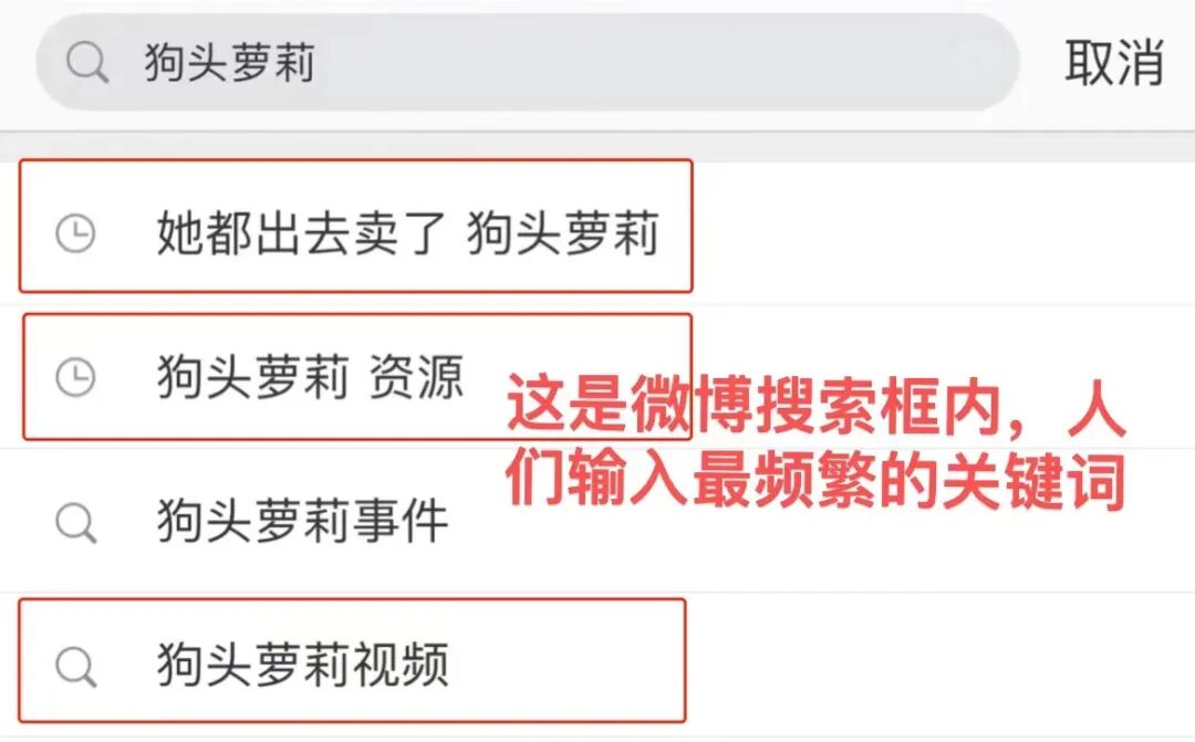 但在微博搜索框中,只要输入“狗头萝莉”的名字,“判官们”的底裤就会被扒个精光。