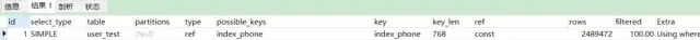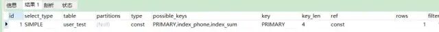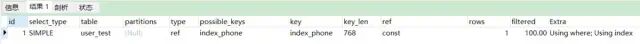 explain select * from `user_test` where uid=10 and phone='13527748096';