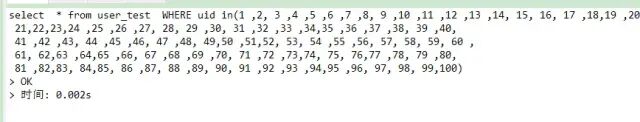 例如:select id from t where num in(1,2,3) 对于连续的数值,能用between就不要用in了;实测速度差距不是很大.
