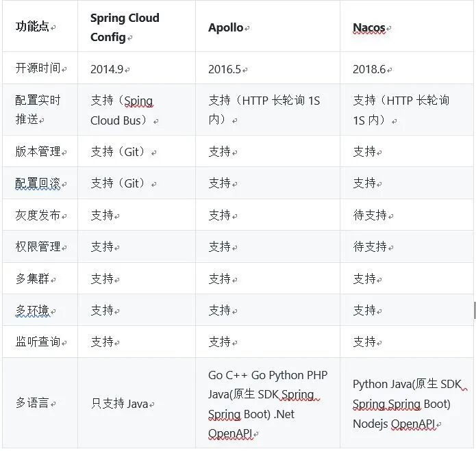 整体比较下来,Nacos和Apollo在配置实时推送链路上是比较简单高效的,Spring Cloud Config的配置推送引入Spring Cloud Bus,链路较长,比较复杂。