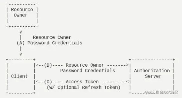 - 密码模式(resource owner password credentials)应用直接都是受信任的(都是由一家公司开发的)密码模式中,用户向客户端提供自己的用户名和密码。客户端使用这些信息,向“服务商提供商”索要授权。在这种模式中,用户必须把自己的密码给客户端,但是客户端不得储存密码。
